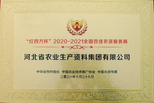 本網訊    10月29日,由中華合作時報社、中國農業技術推廣協會、中國農資傳媒主辦的“紅四方杯”2020-2021全國百佳農資服務商頒獎典禮在江西南昌市舉行,對農資行業中具有為民服務、創新發展、艱苦奮斗的優秀農資服務商代表進行了表彰。集團公司再次榮獲“全國百佳農資服務商”稱號。
