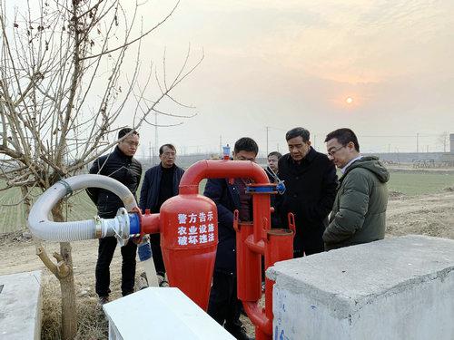 李宜孝在藁城河北省現(xiàn)代農(nóng)業(yè)服務(wù)有限公司節(jié)水淺埋滴灌示范田考察