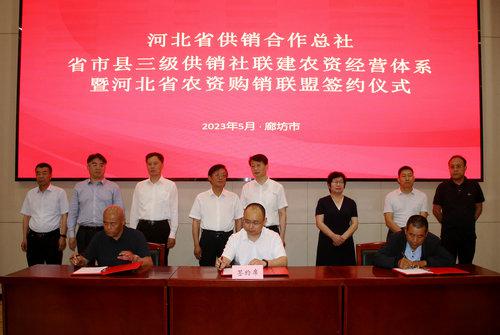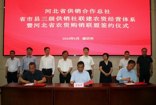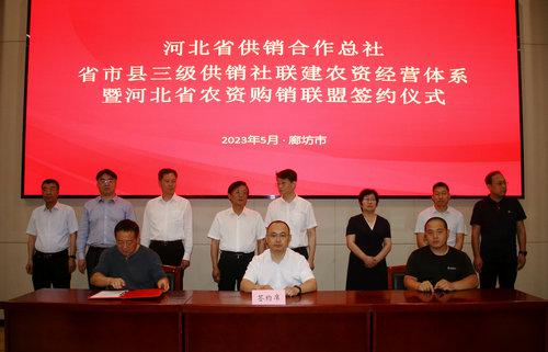 廊坊、唐山、保定、秦皇島、張家口、承德、定州七市三級(jí)供銷(xiāo)社聯(lián)建農(nóng)資經(jīng)營(yíng)體系暨河北省農(nóng)資購(gòu)銷(xiāo)聯(lián)盟簽約儀式在廊坊市舉行
