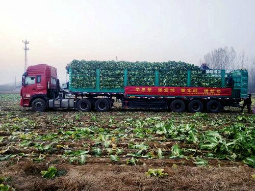 集團公司裝滿大白菜的車輛整裝待發(fā)