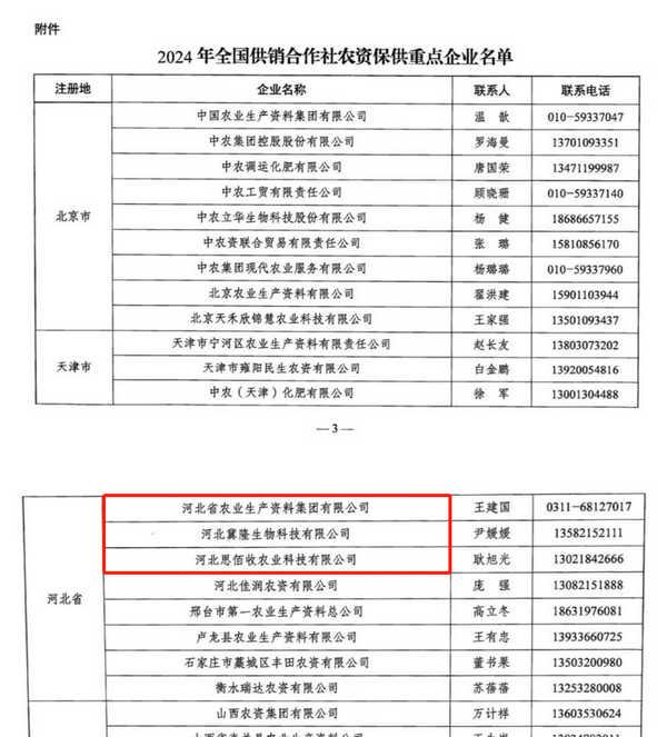 河北省農資集團入選2024年全國供銷合作社農資保供重點企業(yè)名單