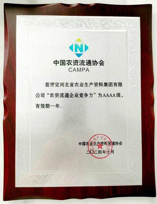 喜報|集團公司榮獲“2024年度農資流通企業(yè)競爭力AAAA級”等多項榮譽