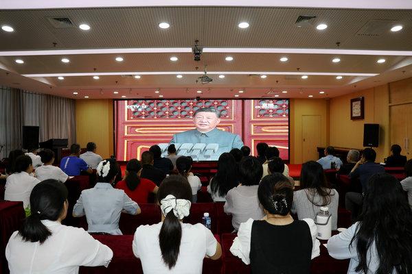 觀看現場氣氛莊重熱烈,全體人員全神貫注、心潮澎湃。屏幕上,受閱部隊官兵軍容嚴整、意氣風發,新型武器裝備悉數亮相、威武雄壯,充分展示了新時代國防和軍隊建設的輝煌成就,展現了人民軍隊的強軍風采和中華民族走向偉大復興的鏗鏘步伐。英姿颯爽的隊伍、整齊劃一的步伐、鏗鏘有力的口號,無一不令人熱血澎湃,引發了現場強烈共鳴和陣陣掌聲。